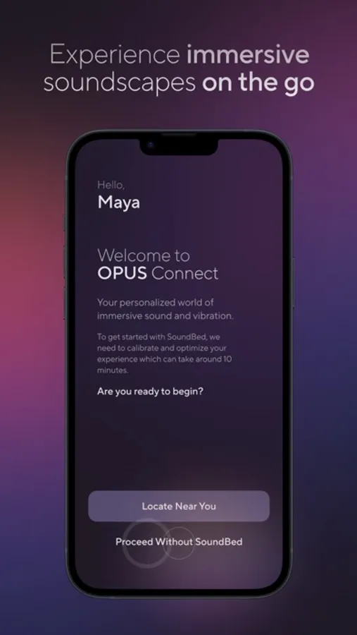 *Accessing OPUS Connect requires no additional equipment, though experiencing the multi-sensory experience of sound and vibration is uniquely possible through our patent-pending product, SoundBed.