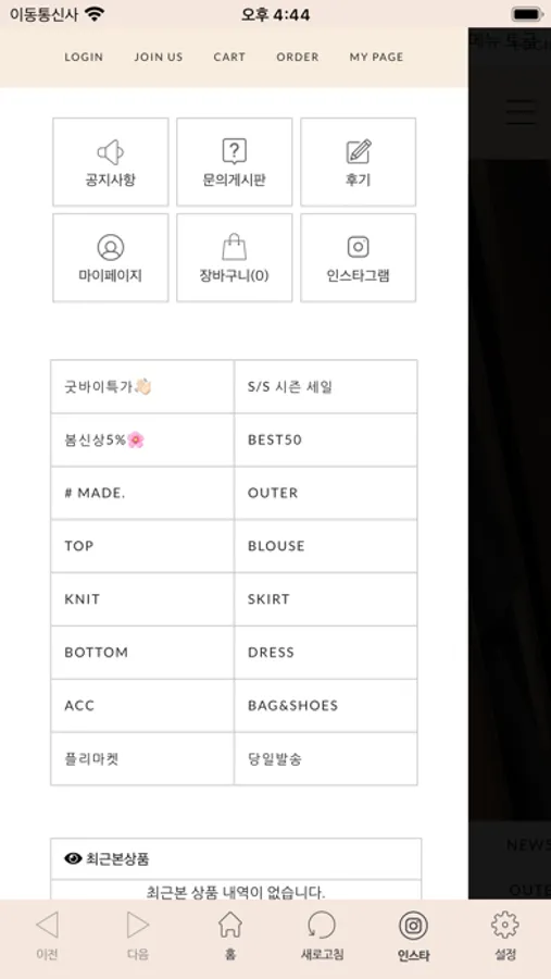 본 APP은 웹사이트 쇼핑몰과 연동되어