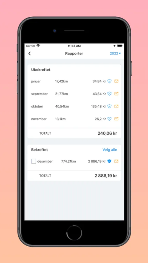 Reiseapp med kjørebok som loggfører dine yrkesreiser og privat pendling til og fra jobb.