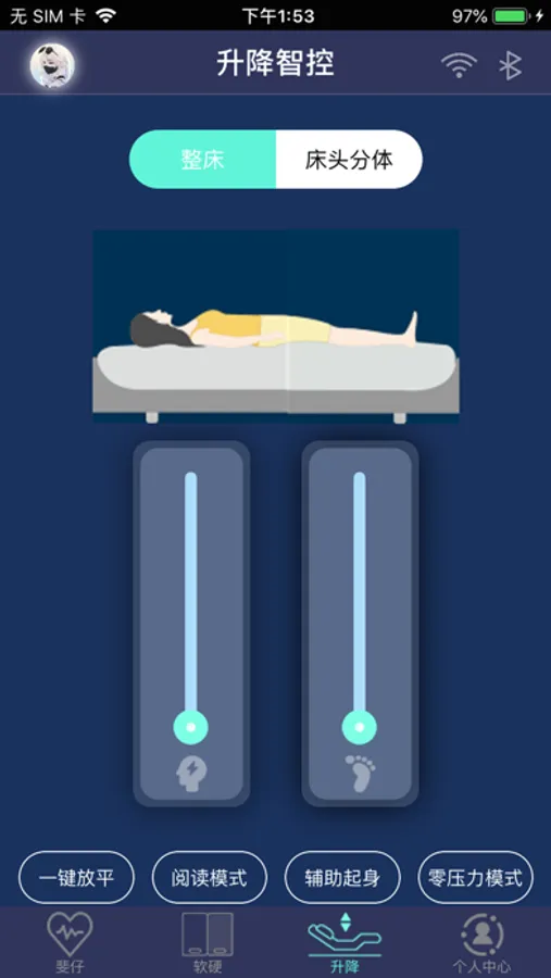 智能手机APP控制,可软硬度调节,左右互不干扰,头尾升降、缓解打鼾;对用户睡眠质量检测、睡眠报告、睡眠模式、大数据物联。