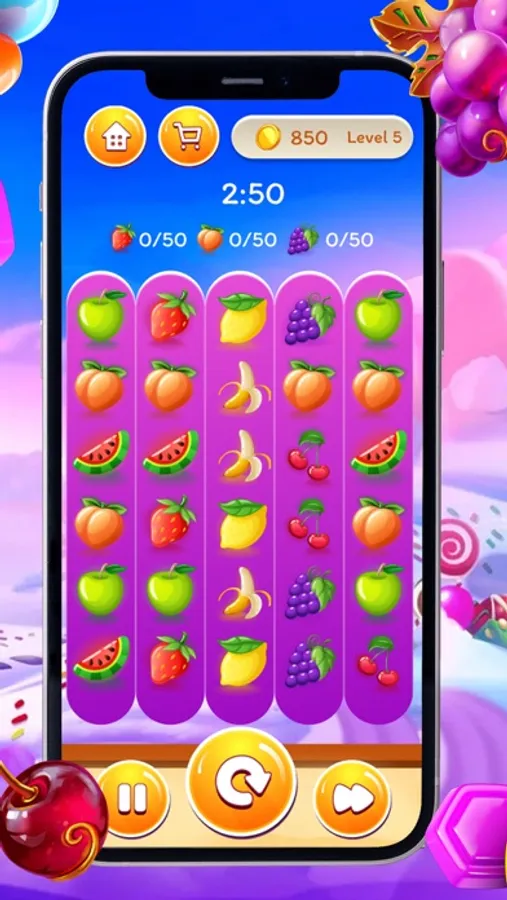 Dive into the world of fruit in this new match3 game. There are plenty of fruit combinations for you to choose from, all of which hold the potential for a variety of rewards. The stunningly designed gameplay in a fruity design will be enjoyed by everyone. Amazing fruit game animation will be appreciated by you. Everything is very simple as always, for maximum collect the best fruits to achieve the game result. Don't forget to use unique boosters.