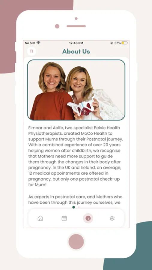 This app was designed and created by Eimear and Aoife, two specialist Pelvic Health Physiotherapists, to support Mums through their postnatal recovery. With a combined experience of 20 years helping women after childbirth, we recognise that Mothers need more support to guide them through the changes in their body after pregnancy. In the UK and Ireland, on average 12 medical appointments are offered in pregnancy, but only one postnatal check-up for Mum!