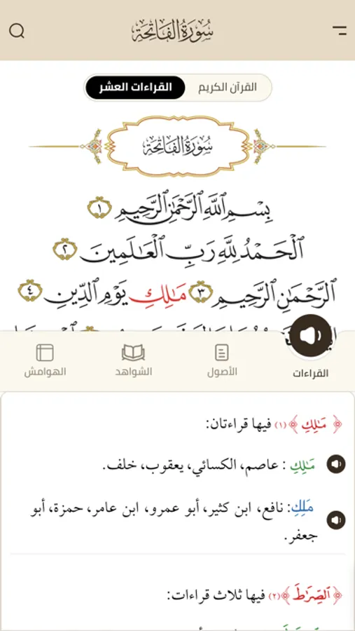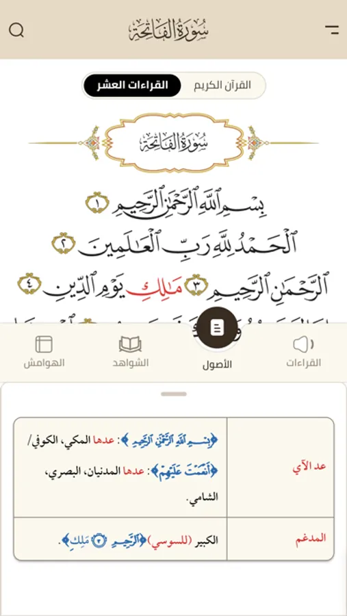 الأول من نوعه بخاصية القراءات العشر مع التلاوة الصوتية لكل قراءة.
