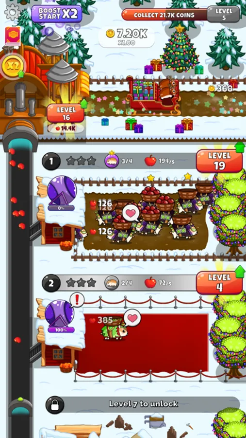 2) Upgrade your idle farm - build new places where your hamsters make apple juice and earn money,