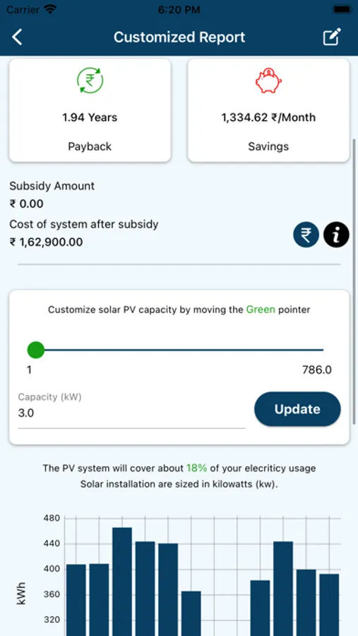1. Create Solar PV (SPV) Design (Map based UI to calculate the size of the SPV system that can be installed)