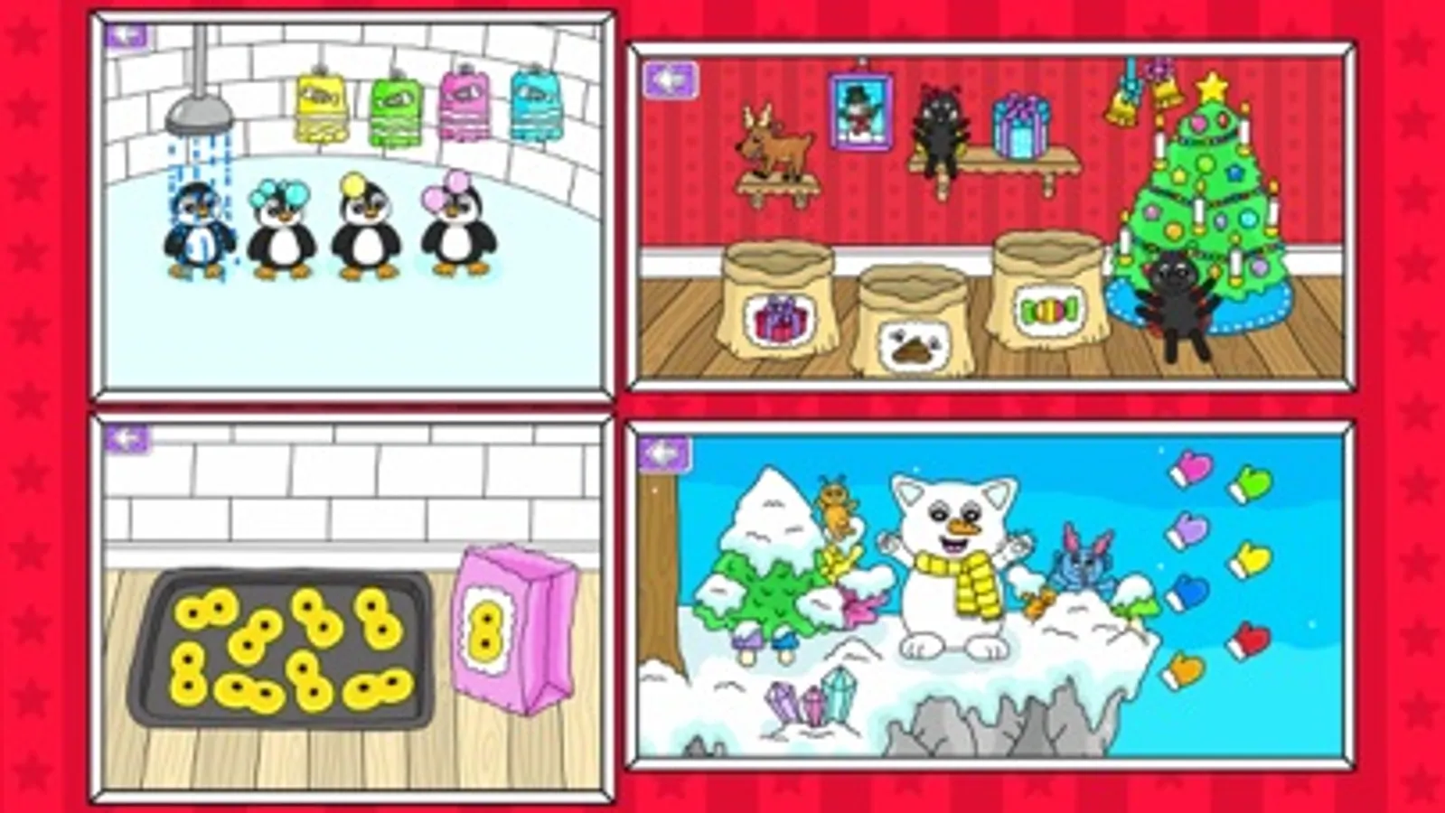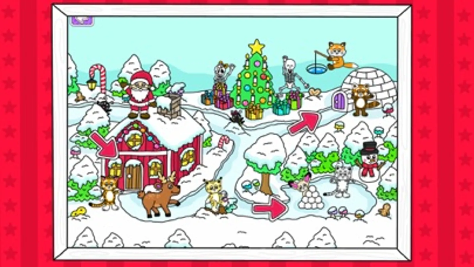 Timmy’s Winterland is a fun and educational game created with kids for kids. Join Timmy in his Winterland! Here you can visit Santa’s cabin and search for elves, give out Christmas gifts, make a snowman, visit the igloo, create toys in Santa’s workshop, play with the penguins and much more in a cosy winter landscape together with pleasant music and funny sound effects!