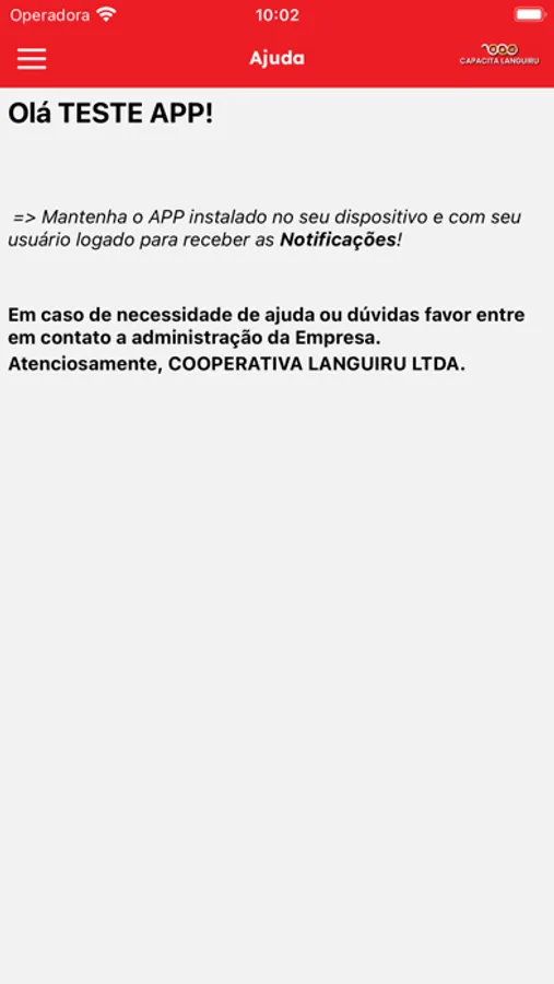 Portal para os colaboradores da Cooperativa Languiru com acesso à treinamentos e notificações da empresa.