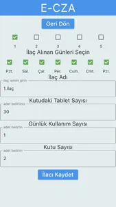 Ayrıca gün değişimine göre ilaç eksiltme özelliğine sahip olan E-CZA uygulaması her yeni gün için ortak reçetelendirme zamanını kendiliğinden hesaplar böylece kullanıcının ilaçlarını takibi kolaylaşır ve süreklilik sağlanır.