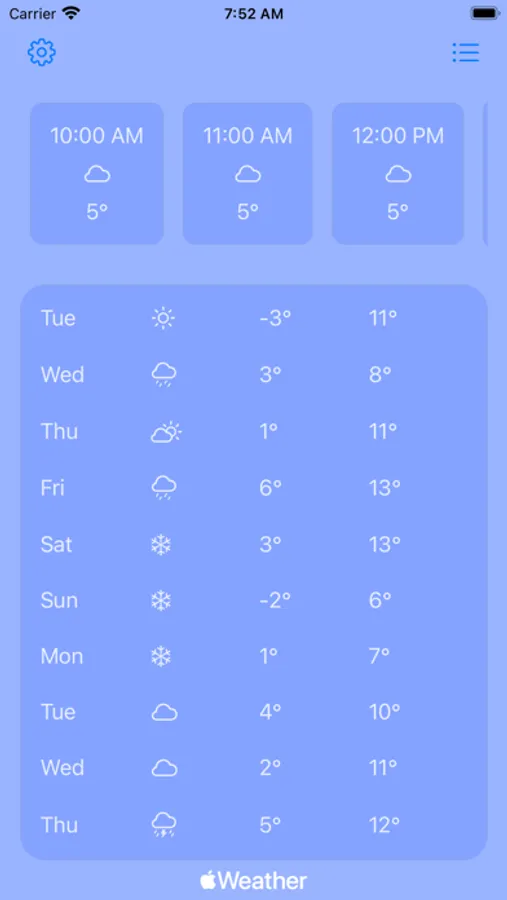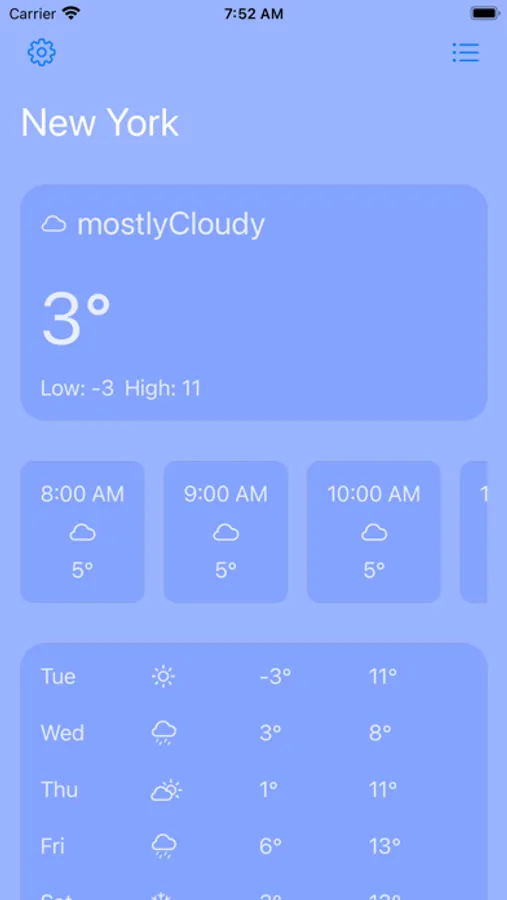 A simple weather forecast app that provides daily, hourly and 10 days weather forecast for many locations.