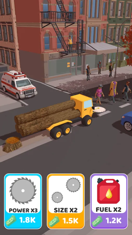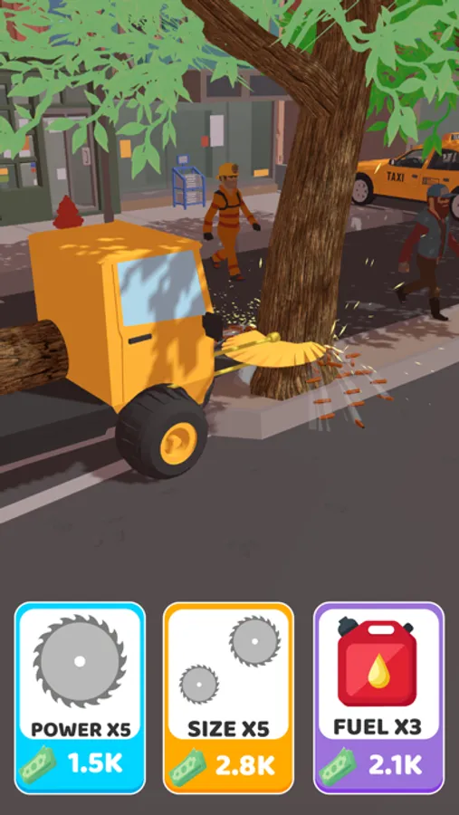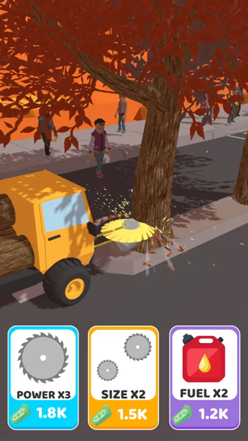 Drive around the city and chop down any trees in your way. Avoid oncoming vehicles and pedestrians. Upgrade your vehicle and saw to chop more trees down!