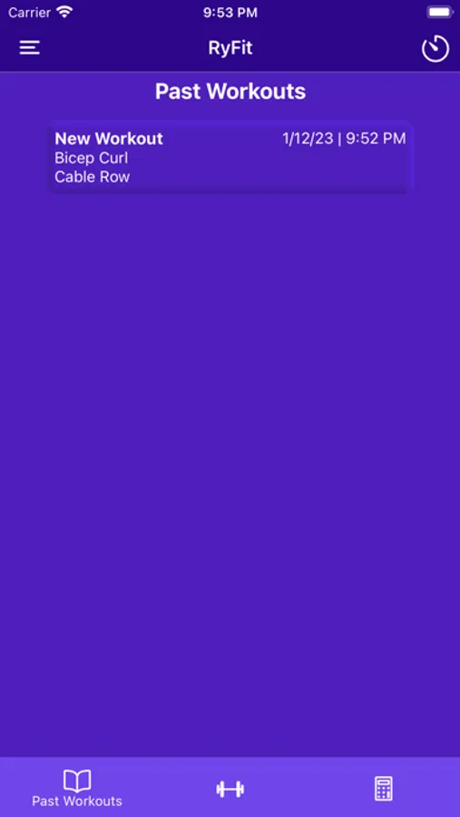 - Start new workouts and view past workouts