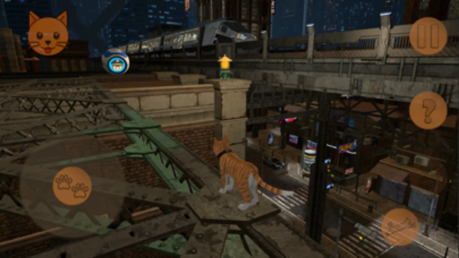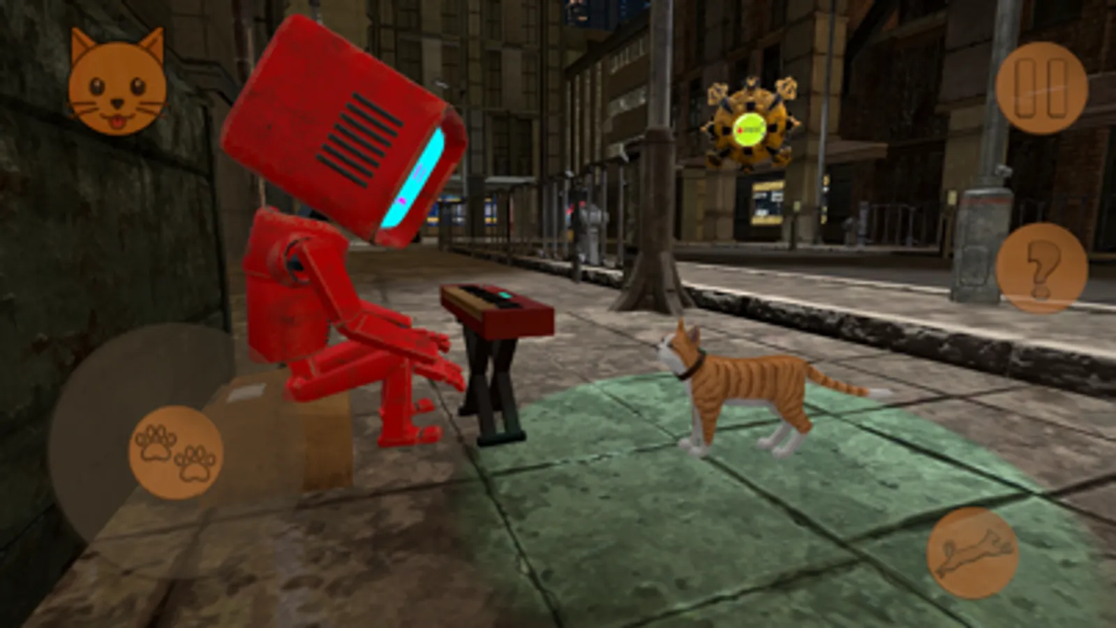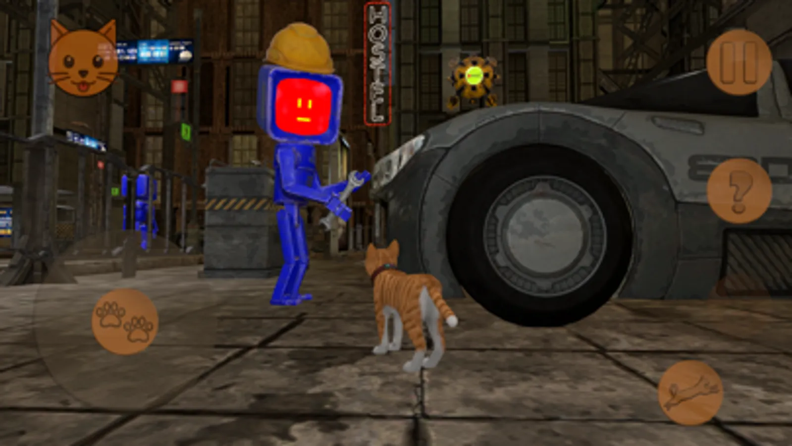 It was 2177 year. About a hundred years ago, artificial intelligence took control of the Earth. Playing as a ginger stray cat, you have to find out the secret of the city in which you ended up. This city is filled with robots and patrol drones. You have to find out if there are other living organisms besides you in this city, and also try escape from it. Your kitten pet has a smart collar with which you can receive the necessary information from friendly robots. Since you are playing as a stray cat, you will be able to climb onto the roofs of buildings and hide in the most unexpected places from patrol drones. Take part in an exciting, fantastic adventure simulator of the ginger stray cat in the future city and solve his riddle.