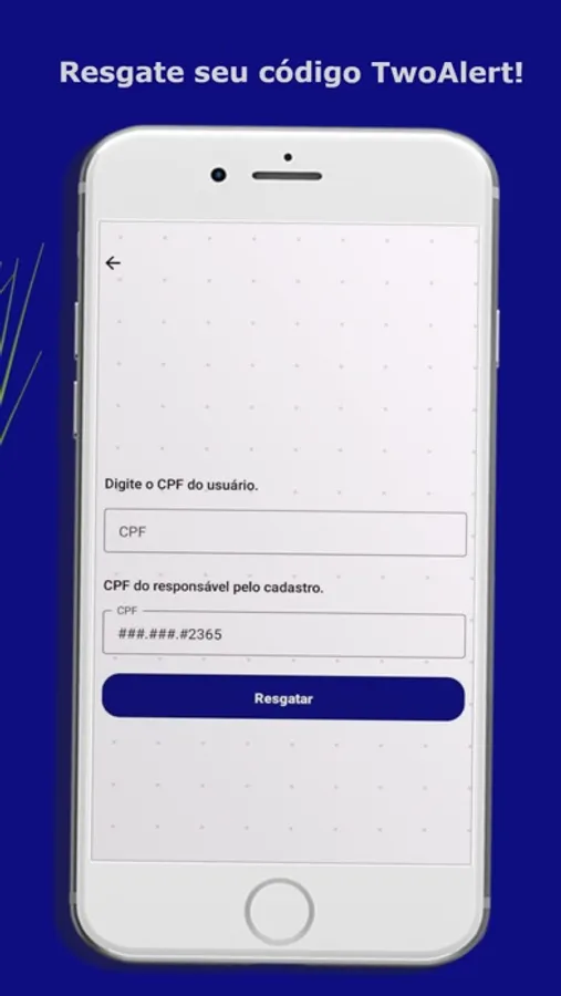 Cadastrar - Aqui é preenchido o cadastro do(a) usuário(a) e quem preenche é outra pessoa da família, como mãe, irmão, tio, primo etc... É solicitado o nome, idade, estado civil, sexo e gênero, nacionalidade, foto e CPF. Todos os dados, com exceção do CPF, que não pode ser visualizado por terceiros, podem ser compartilhados com autorização do usuário. Por questões de segurança, a foto deve ser tirada sempre com a pessoa que fez o cadastro e não deve ser usada em redes sociais, apenas quando solicitada por alguém através do TwoAlert.