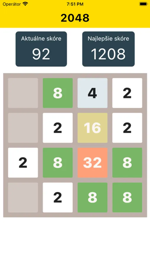 Logická hra 2048, v ktorej je potrebné dosiahnuť najvyššie skóre spájaním čísel s rovnakou hodnotou, až pokiaľ nie je zaplnené celé hracie pole.