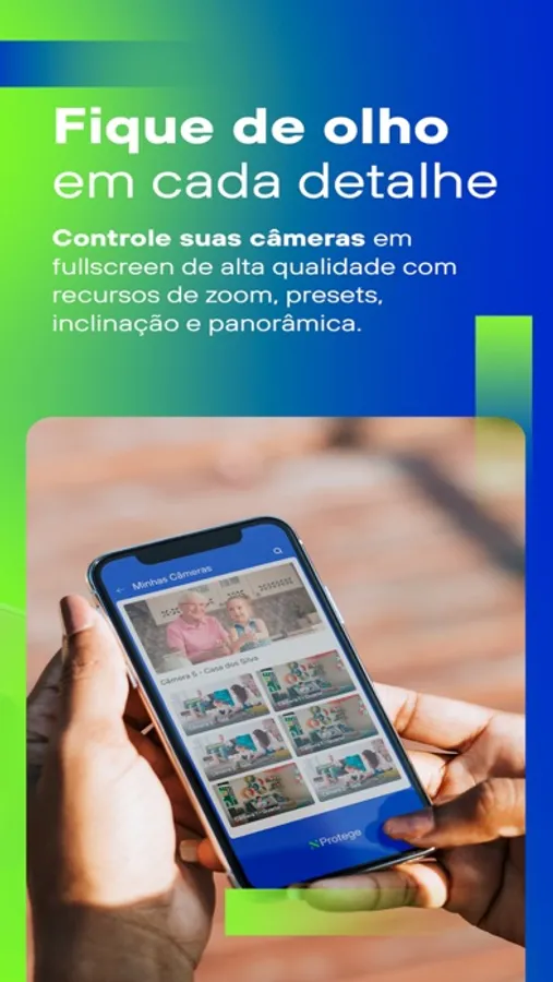 Acompanhe na palma da mão, em tempo real, sua residência ou comércio e, ainda, crianças, idosos e pets.