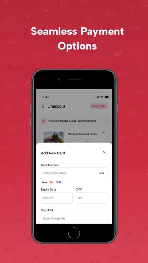 Checkout with several orders from different restaurants and tap to pay with your debit card or other payment options.