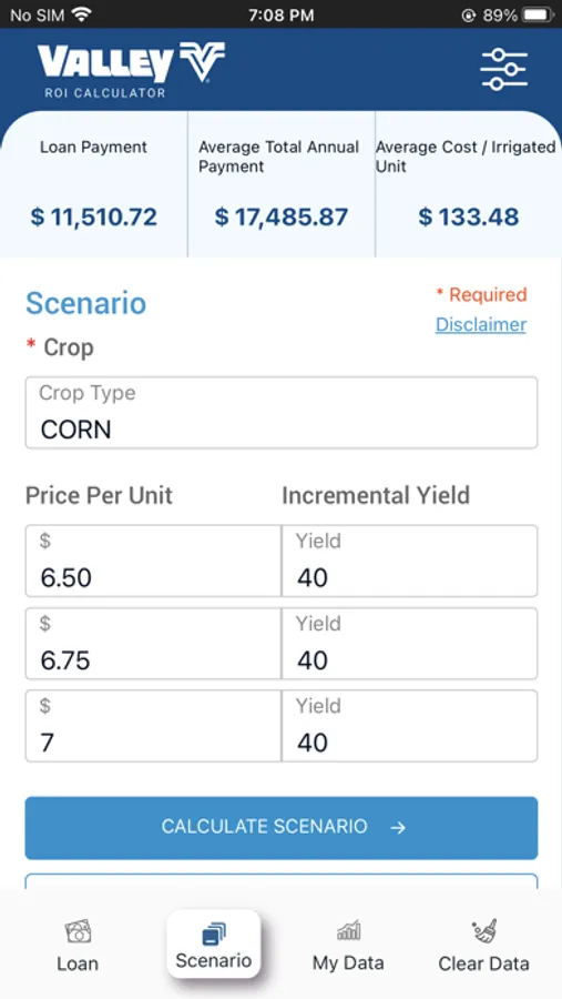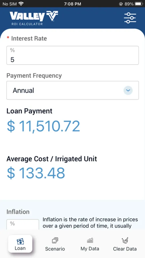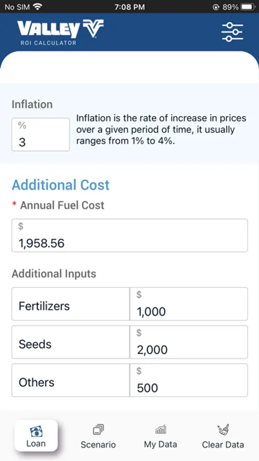 Calculate your ROI on the amount invested, operational expenses considering estimated inflation, and crop yield over the period of the loan.