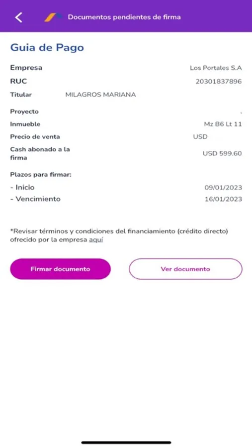 • Pagos de cuota inicial