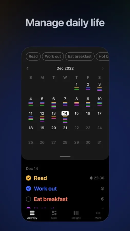 Personalize your experience with custom themes. Habit management is highly personal, after all.