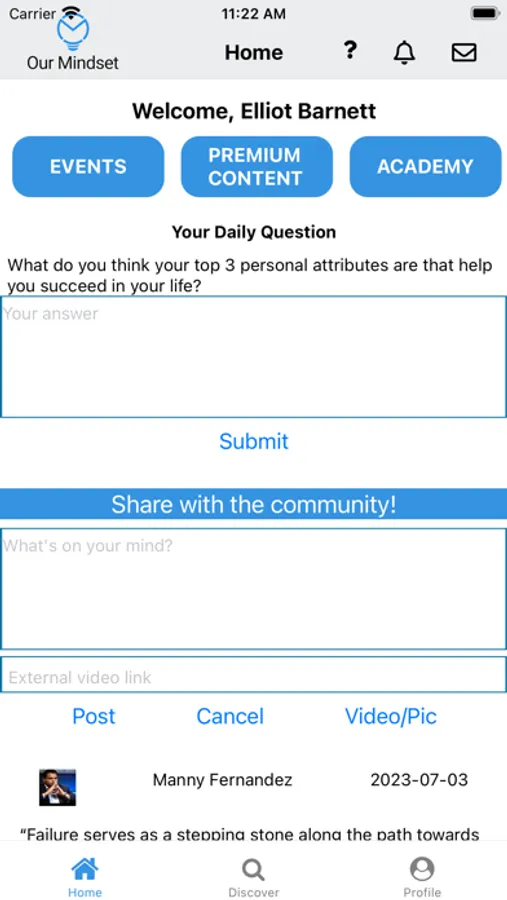 Come join the incredible Our Mindset community, pioneered by Manny Fernandez. It is time for you to live the life you deserve. With the Our Mindset AI-driven social platform for e-learning, it’s now within reach. Join our vibrant community and embark on a journey towards your Optimal Life. We are all lifetime learners, but no one achieves massive success on their own. With Eika as your personal AI coach, break free and start living the life you deserve. Immerse yourself in incredible live events and e-courses targeting mental, physical, and financial fitness. Our Mindset is more than an app; it's a supportive community that nurtures and supports your growth. Are you a coach? Do you have a business in the areas of mental, physical, or financial education? Do you have a passion for helping others? Do you want to make passive income? We are crowd-sourcing self-help by providing everyone in the community the opportunity to contribute and share in the rewards of success. Experience the transformational power of Our Mindset. Join the learning revolution and embrace a life you love. Your success awaits!