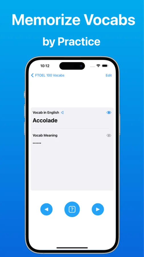 - Hide and show the meaning of the vocab, or the vocab itself while testing