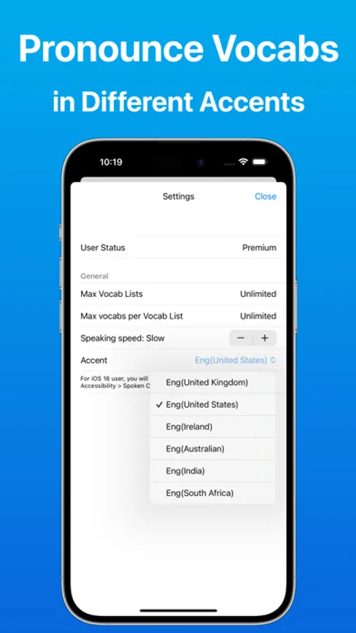 *for iOS 16 user, you will need to set up accent in iPhone > Settings > Accessibility > Spoken Content > Voices