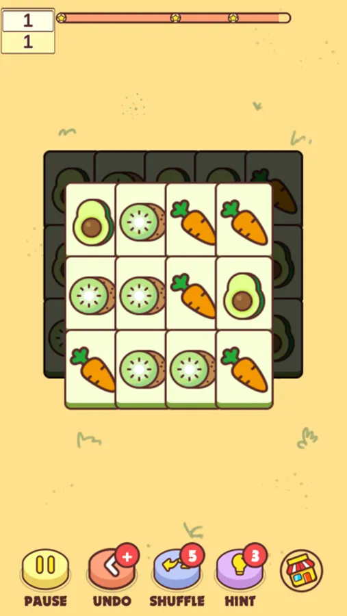 Click the square on the game scene, and the square will be automatically placed in the collection box below. When there are 3 blocks of the same element in the collection box, these 3 blocks will be eliminated automatically, and you can win after eliminating all the blocks on the scene! If the collection box has 7 or more squares, the game will be over.