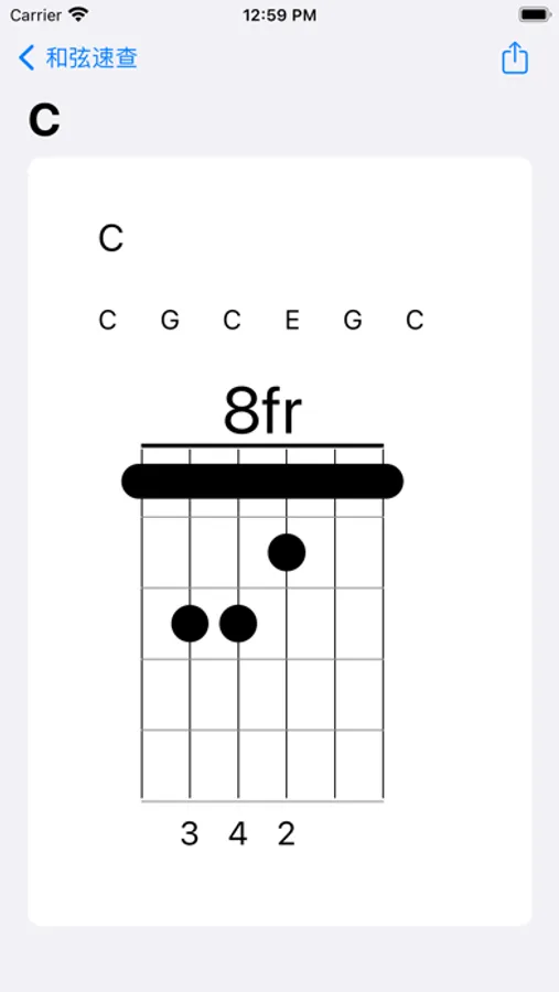 吉他和弦速查助手,收录了各个调式的吉他和弦和弦音指法图,大小三和弦,增减三和弦,大小增减七和弦,挂二挂四等等和弦图式以及和弦的根音构成音,指法图等信息。
