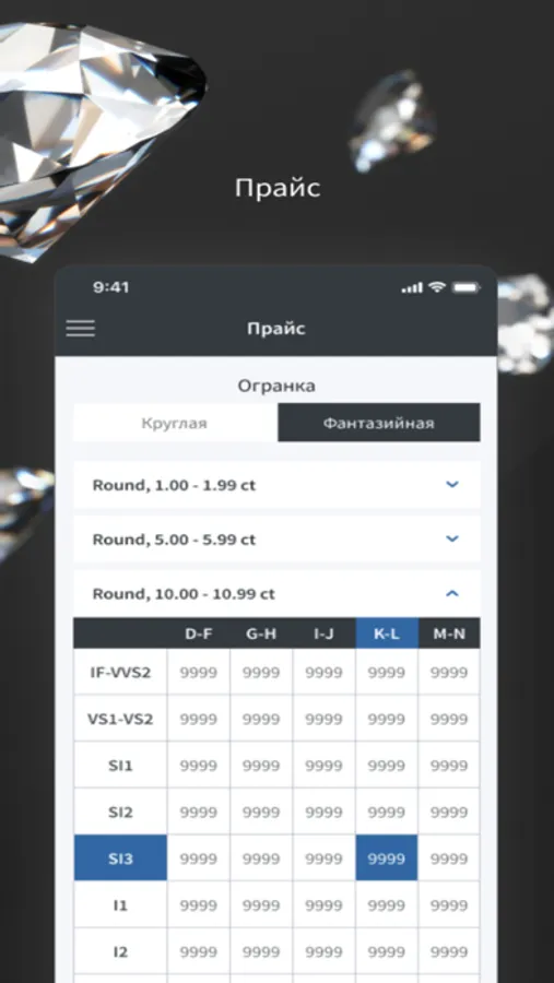 • Используйте калькулятор бриллиантов круглой и фантазийной формы по Rapaport Diamond Report