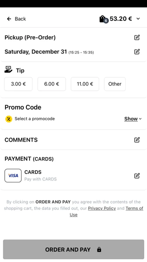 - Durchsuchen Sie die Speisekarte des Restaurants und sehen Sie sich alle anpassbaren Optionen im Voraus an