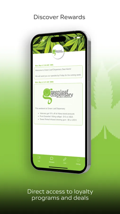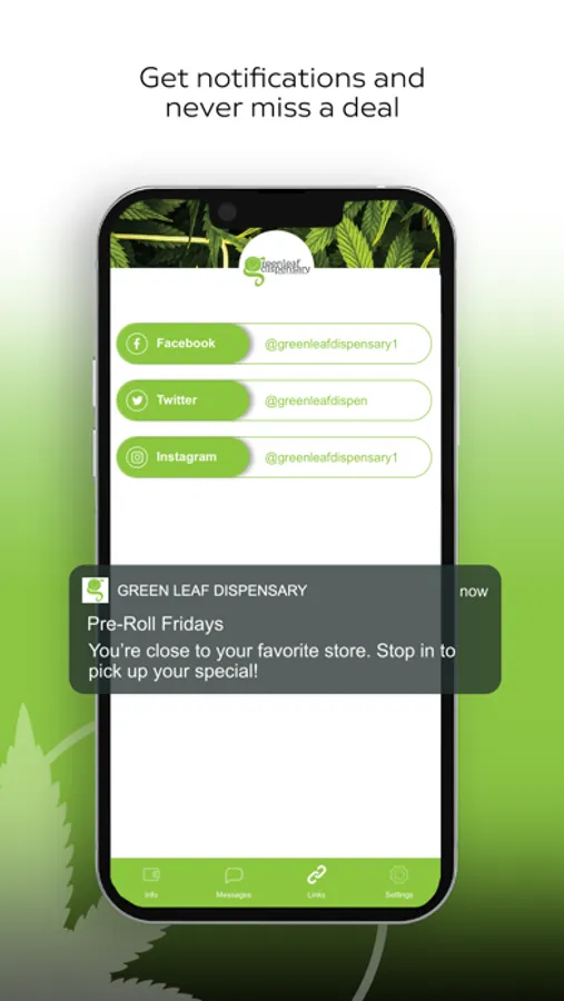 Get more of your favorite dispensary with the official Green Leaf DIspensary app! Get exclusive offers, deal alerts, browse our social media and much more! You will have access to our VIP messages with special deals right at your fingertips. Staying connected to your favorite dispensary has never been easier.