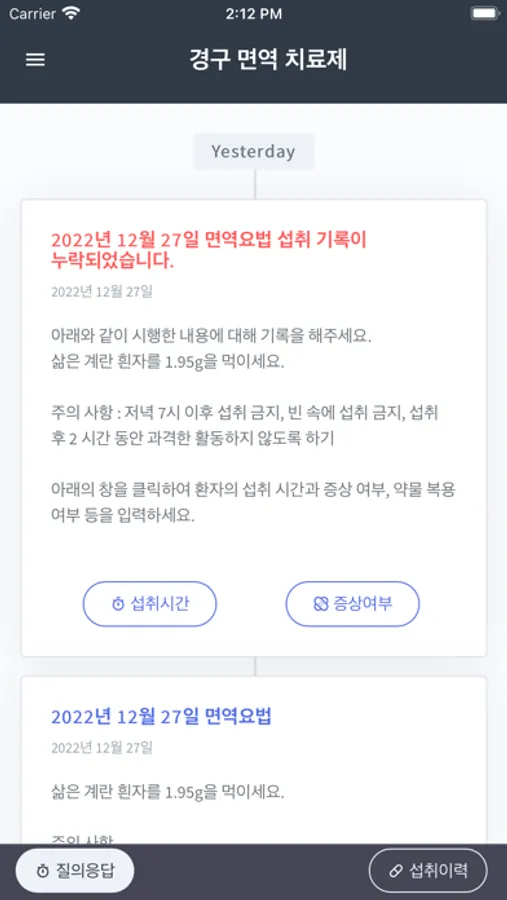 병원에 내원한 식품알레르기 환자의 진료 정보에 기반하여 의료진의 처방에 따라 경구면역요법에 대한 프로토콜을 제공받으며 해당 프로토콜은 본 어플리케이션을 통해 알레르기 반응 탐색 및 그에 따른 스케줄을 관리하고 이를 의료진이 모니터링함으로써 식품알레르기에 대한 경구면역요법 프로토콜과 알레르기 반응에 따른 스케줄 관리 프로토콜의 임상 적용 및 효용성을 검증하고자 함