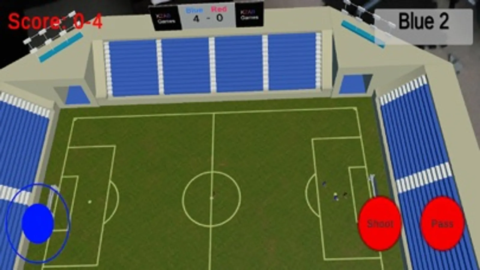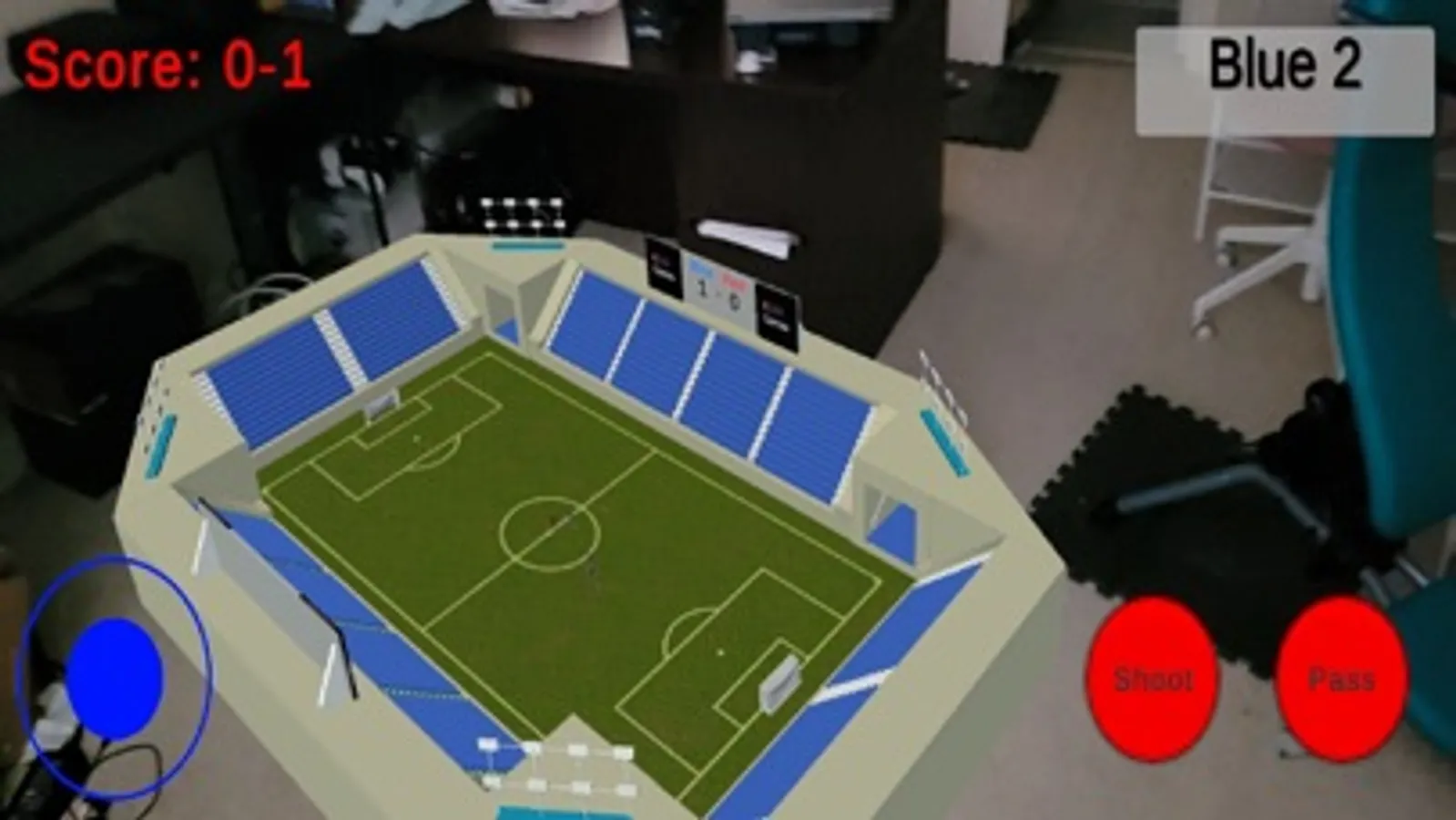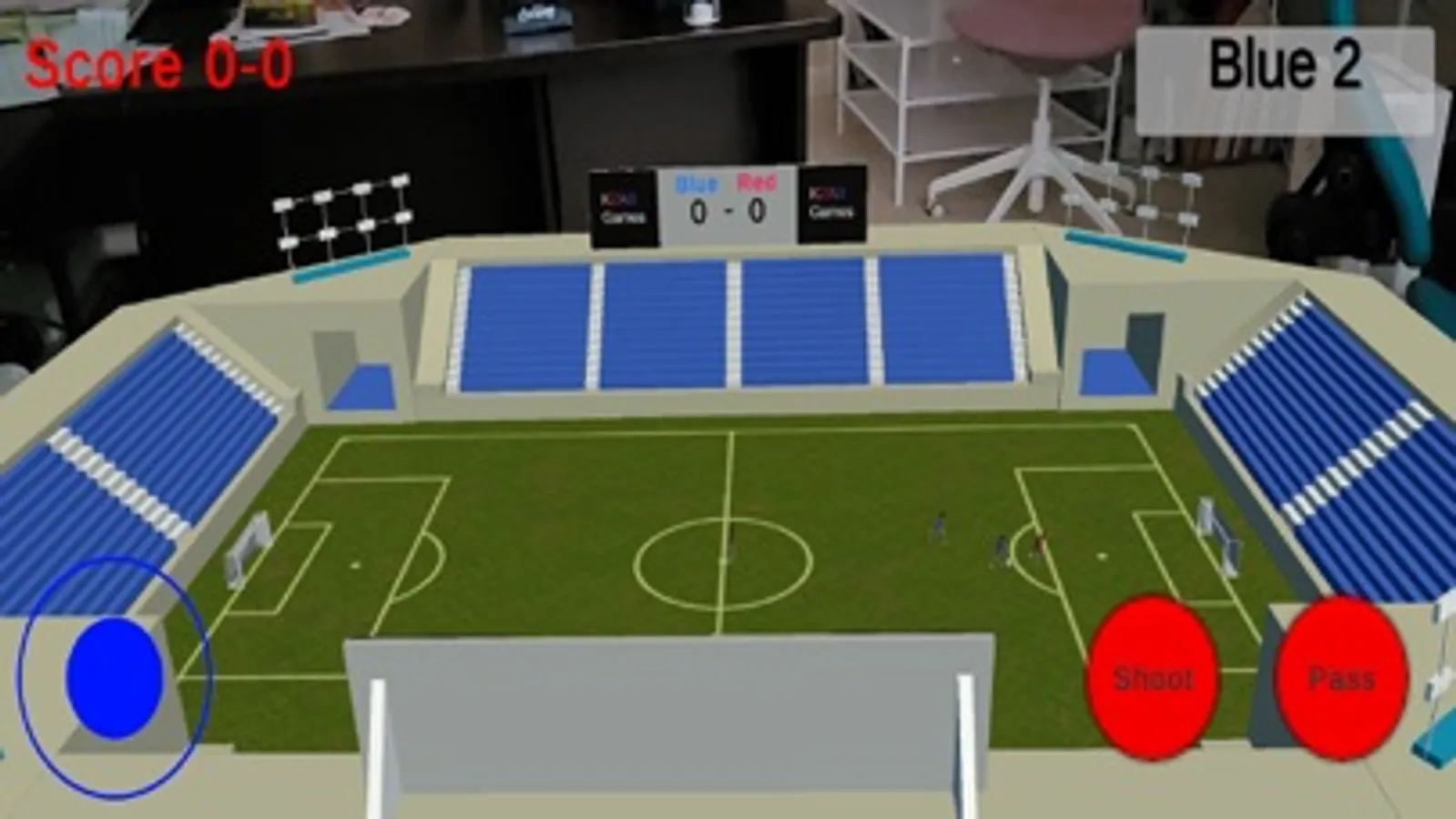 This is a simple 2 on 2 soccer game that showcases the future of AR technology. Open up the game and a stadium pops up in front of you. This stadium appears to be floating in your room a few feet forward and you can walk around or inside of the stadium while controlling your player and playing the game. The score pops up on the screen as well as at the top of the stadium.