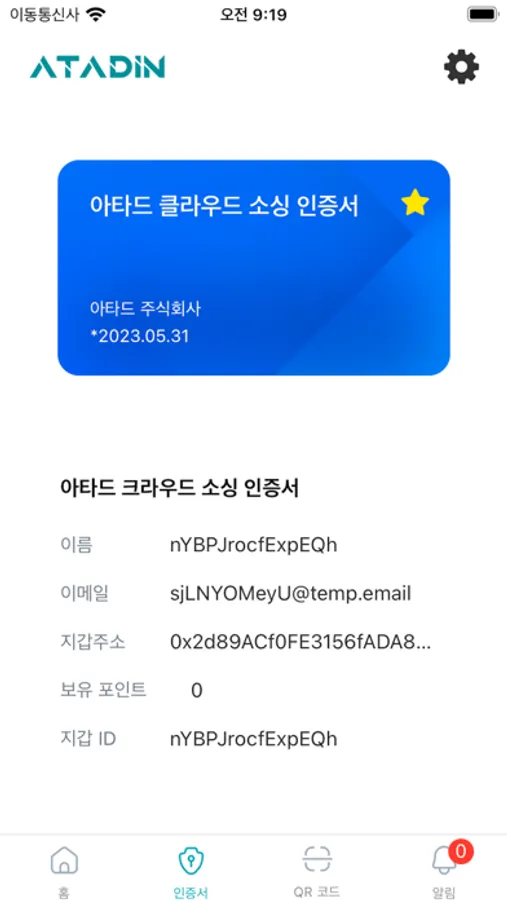 블록체인 기반 아타드 생태계 인증을 위한 DID 앱