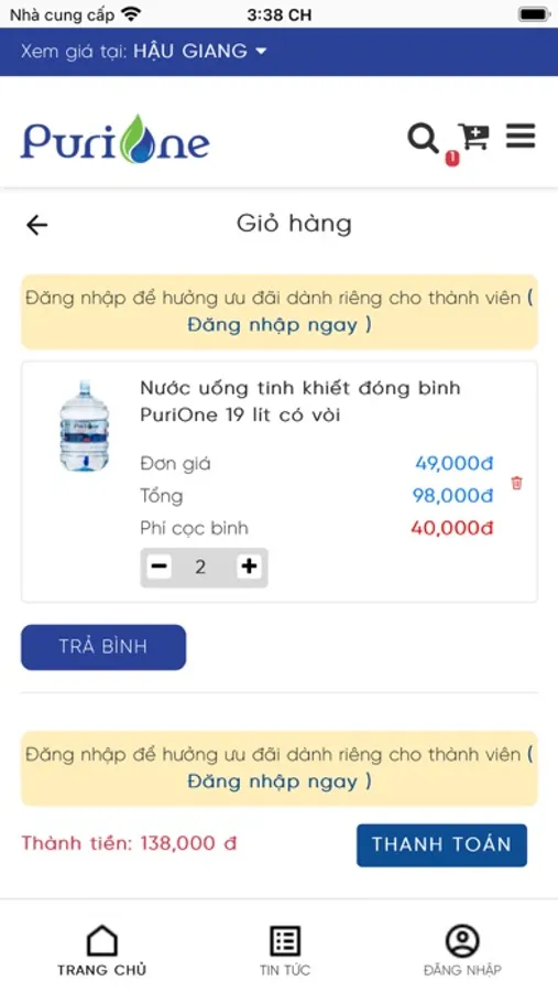Tại PuriOne, chúng tôi phân phối nước tinh khiết đóng bình từ nguồn nước mặt sông tự nhiên thanh lọc qua công nghệ Veolia tiên tiến nhất của Pháp để có dòng nước tinh khiết, sau đó được xử lý qua hệ thống thẩm thấu ngược, tiệt trùng bằng Ozone và tia cực tím trước khi đóng bình.