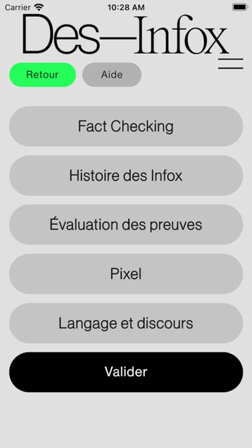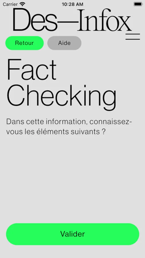 L’application est la déclinaison numérique de la démarche Des-Infox, elle est le premier outil d’éducation aux médias et à l’information gratuit et accessible au grand public partout et tout le temps.