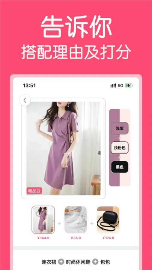 区别于小红书、唯品会、得物等平台,我们的APP为您提供针对个人特征的搭配评分与解释,助您深入了解自己的风格。