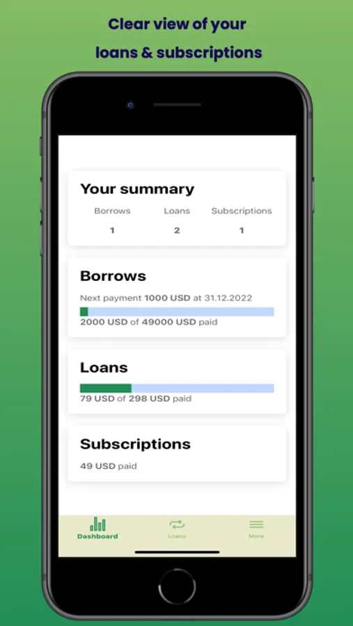 Loanly is a free of charge application that helps you manage the flow of your monay that you borrowed, lent or allocated in some subscriptions (eg. Internet, Cable etc.) and it follows the principle "simple, but useful".