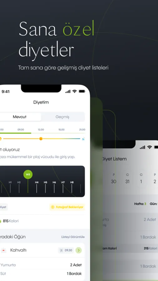 Bu uygulama sayesinde öğünlerinizi kaçırmadan programınızı tamamlayabilirsiniz. Uygulama her bir danışana özel olarak beslenme ve öğün saatlerini bildirim olarak yollayacaktır.