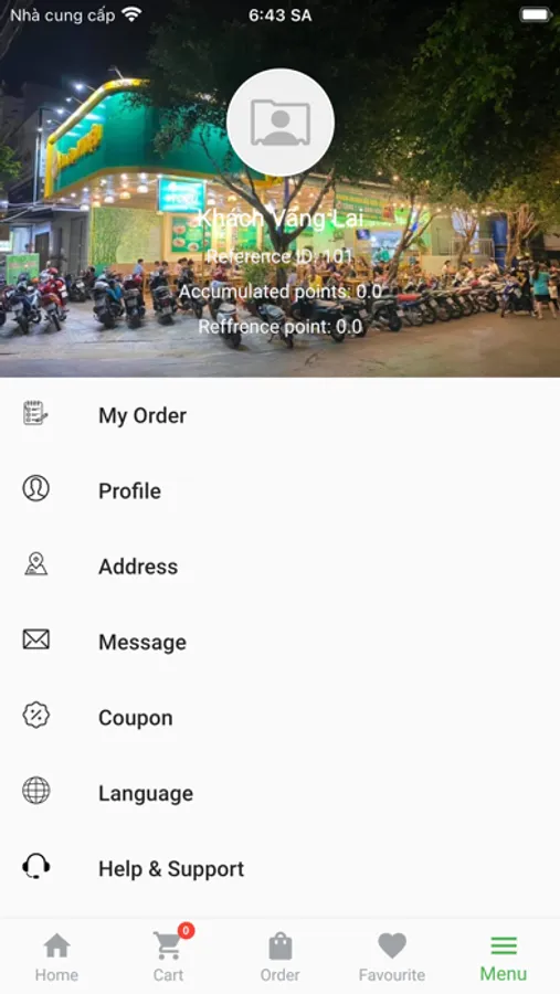 Ứng dụng đặt bún đậu và thức uống tại cửa hàng Bún Đậu Vi Diệu ở Rạch Giá, Kiên Giang