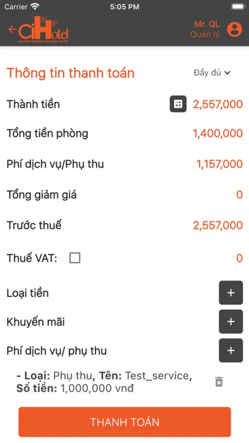 - Quản lý hoá đơn, thông tin đặt phòng khách sạn