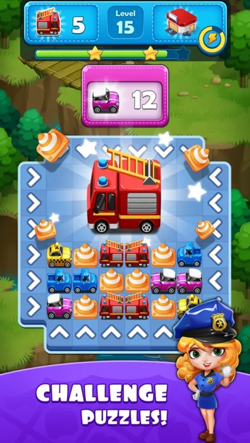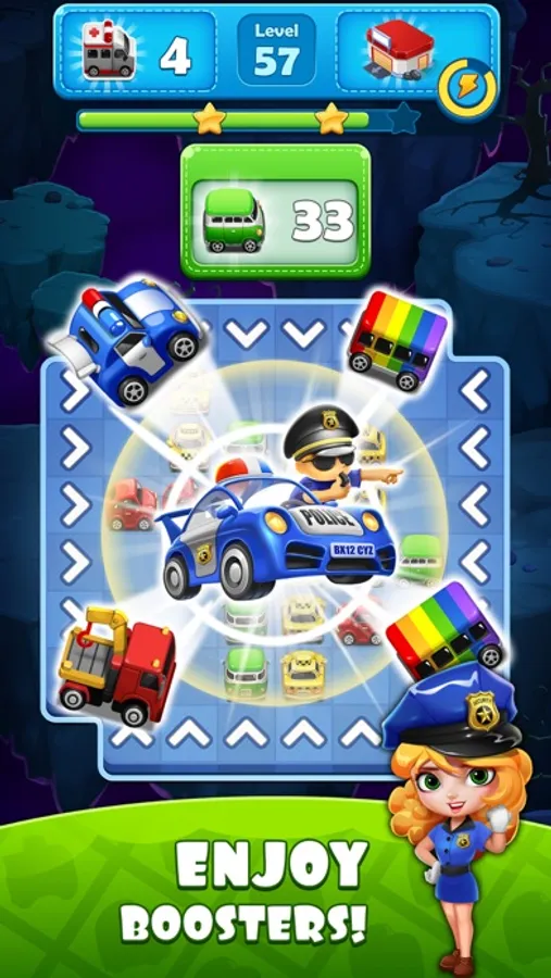 Show off your strategic thinking, swipe to match 3 or more in a row, and watch the magic happen. Use your moves wisely to beat all car jam challenges and you will unblock vehicles out of traffic jams to get to their destinations during rush hour. Help police cars to catch thieves, ambulance cars to save people in urgent sickness, and helicopters to rescue wildfire outside the traffic puzzle city.