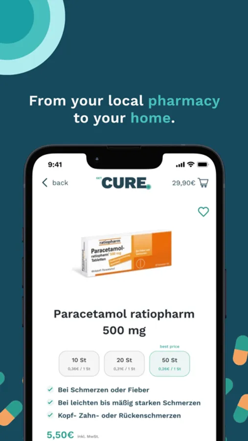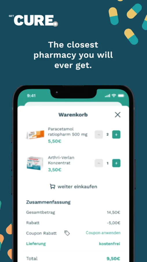 CURE is the shortest way from the pharmacy to your home. If you're sick, in pain, or not feeling well, you should not go outside but rest in a place where you can get better. And we can get your medication and deliver it for you.