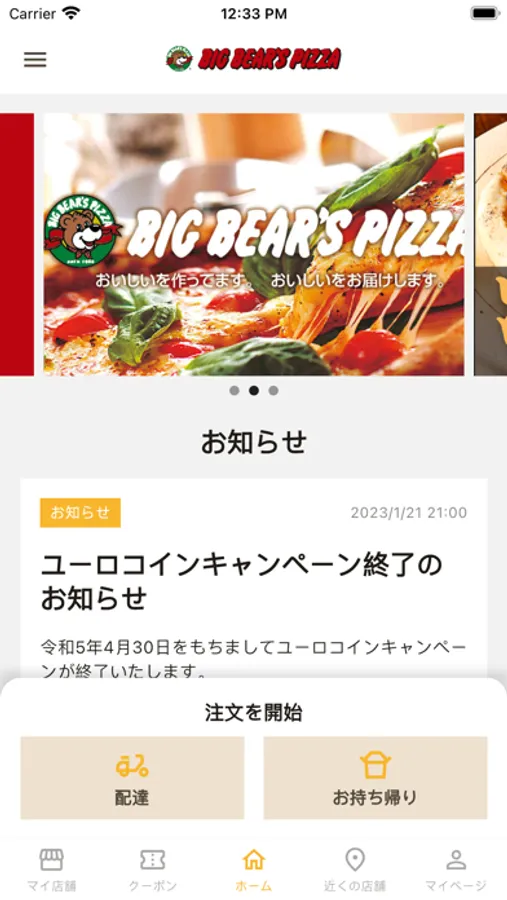 北九州市で1986年から地元の方に愛されてきたピザの宅配「ビッグベアーズ」の公式アプリです。