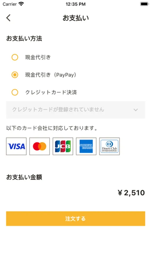 ・お支払いは代引き(現金またはPayPayでのお支払)、クレジットカード決済が可能です。