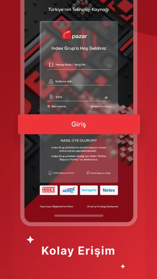 Bu uygulama sadece Index Grup iş ortakları içindir. Index Grup iş ortakları kendilerine özel kullanıcı adı ve şifresi ile uygulamayı kullanabilirler.