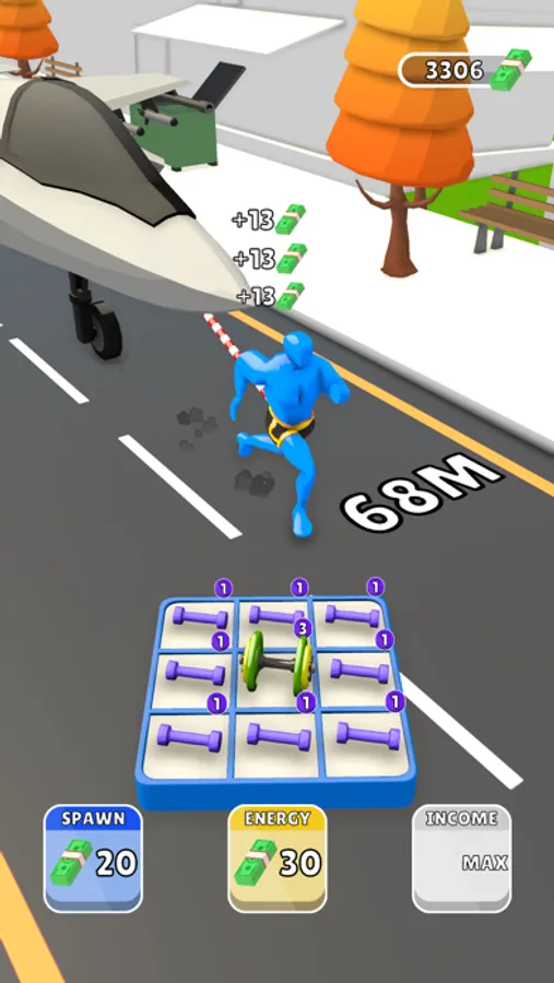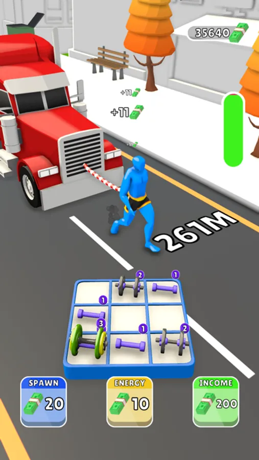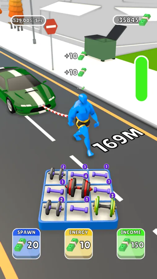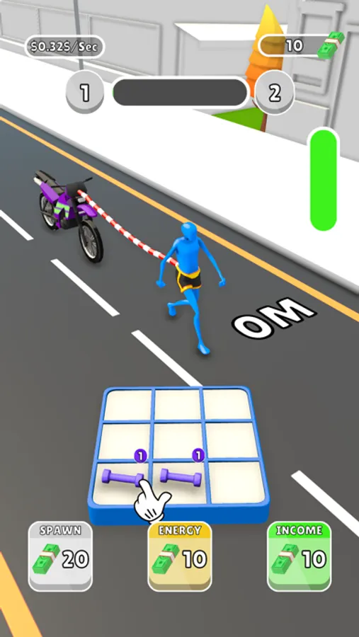 Merging is very important and critical in this game, set your strategy, merge the dumbbells and watch your character grow their muscles. In this way, your character can easily pull even heavy cars.