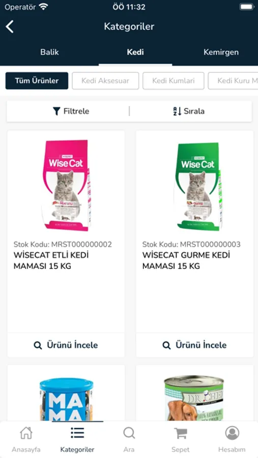* Ürün kategorilerinde filtreleme yapabilirsiniz