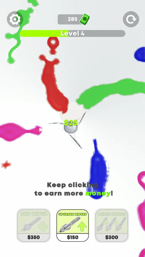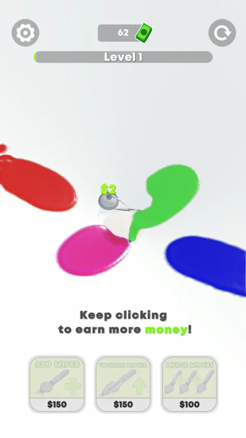 As wipers clean liquid, you'll earn extra cash! Spend cash on adding new wipers, upgrading, and merging them together for longer more powerful wipers.
