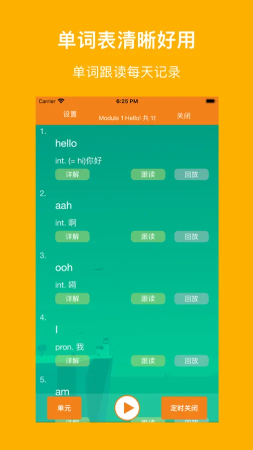 1、跟读模式:循环当页、循环单元、循环课本、区间循环
